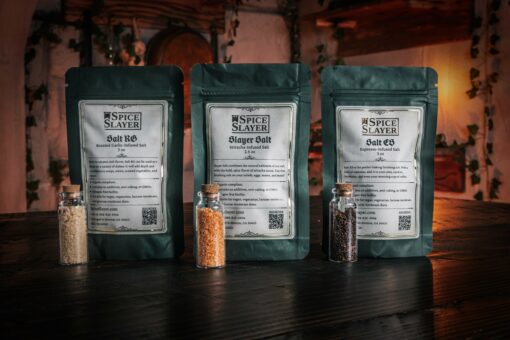Introducing Spice Slayer’s Salt Trio – a collection of three unique finishing salts that are carefully crafted to enhance the flavor of your meals. This trio includes Salt ES, Salt RG, and Slayer Salt, each with its own distinctive flavor profile that will transform the way you season your dishes.