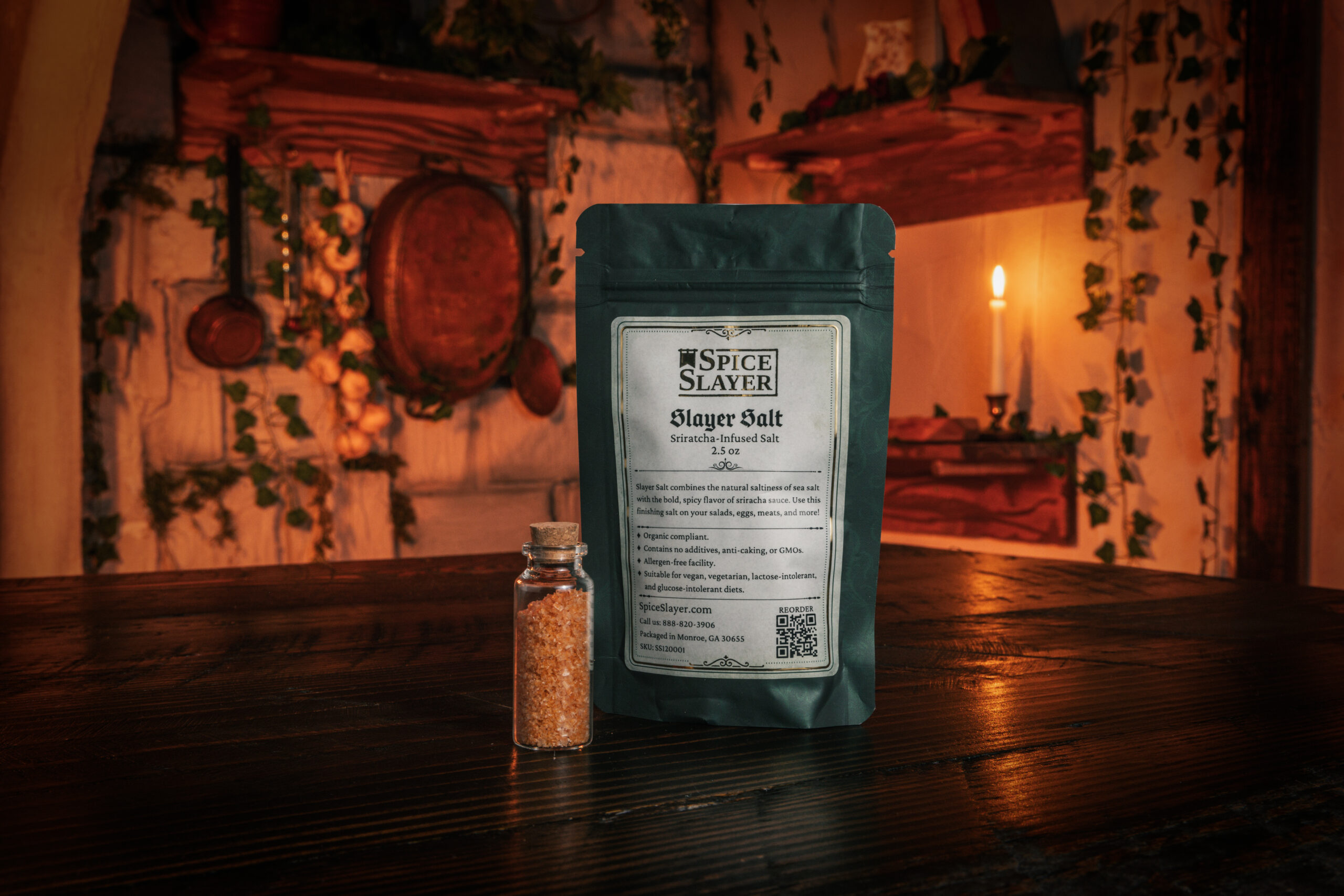 Looking for a way to take your dishes to the next level? Look no further than Slayer Salt, a sriracha-infused sea salt that will slay your taste buds with its bold and spicy flavor.